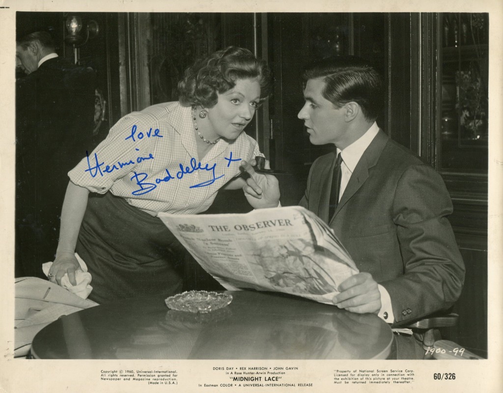 Both her marriages, to the Hon David Tennant and, later, to Captain J.H. Wills, MC, were dissolved. There was one son and one daughter from her first marriage. Her autobiography, “The Unsinkable Hermione Baddeley” (1984), was generously warm-hearted and cheerfully vague about dates