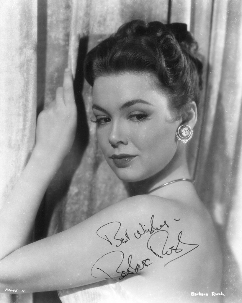 Rush was born in Denver, Colorado, the daughter of Roy Rush, a lawyer, and Nora (nee Simonson), a homemaker who took up acting and later nursing after her husband’s death when Barbara was a teenager. At the University of California in Santa Barbara she won an acting award for her performance as Birdie in Lillian Hellman’s The Little Foxes, and won a scholarship to the Pasadena Playhouse College of Theatre Arts. It was while she was performing in summer stock that she was spotted by a Paramount talent scout and given a studio contract in 1950. She made her film debut the following year in Molly (AKA The Goldbergs), a comedy starring Gertrude Berg.