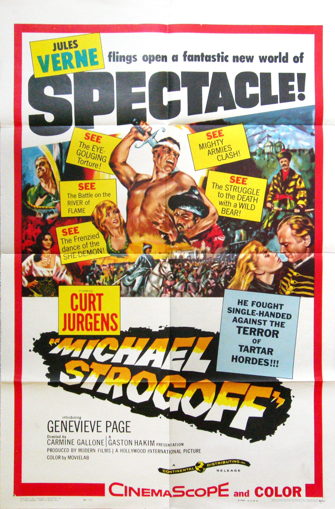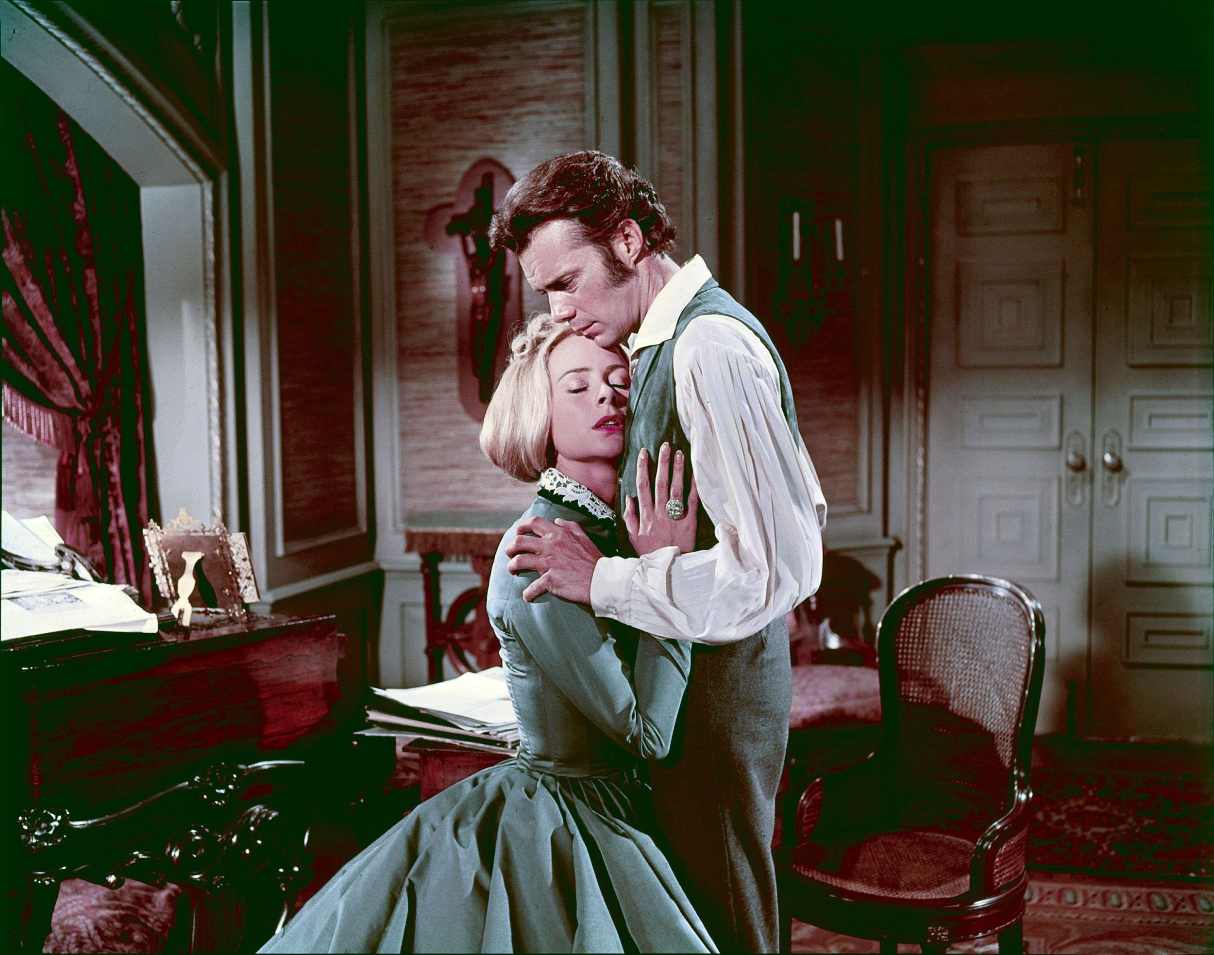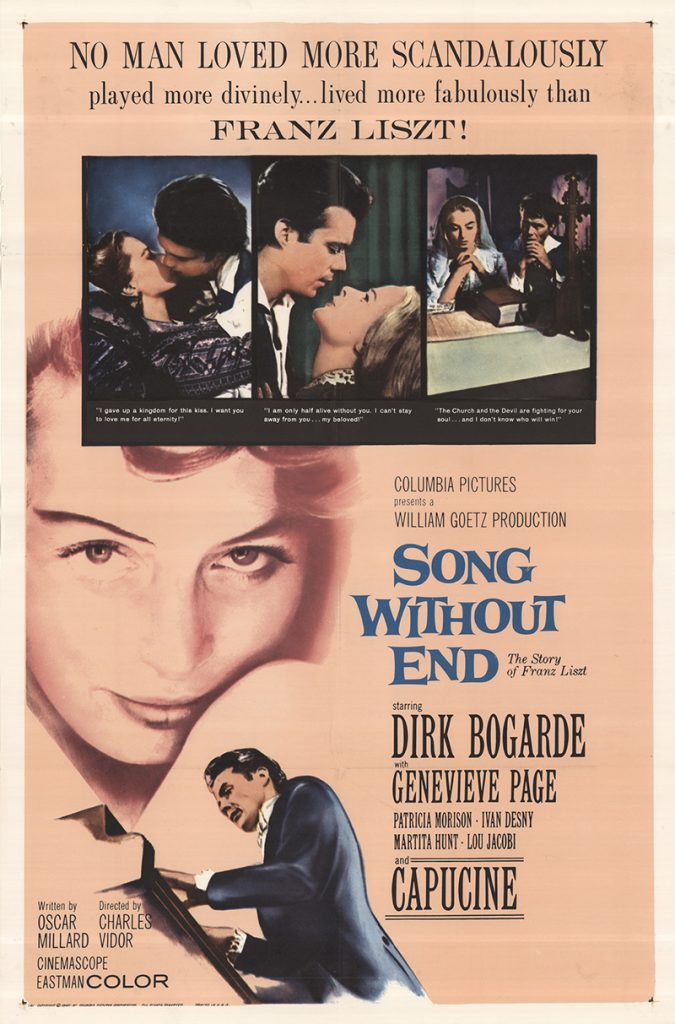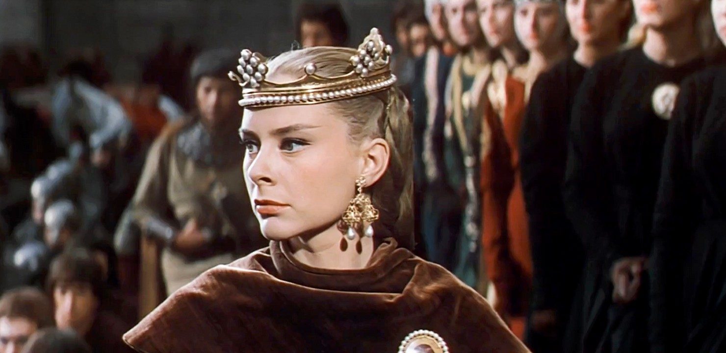 Geneviève Page became a fixture in these hands-across-oceans co-productions being shot in the newly peaceful Europe. In Song Without End (1960) she played Countess Marie to Dirk Bogarde’s Franz Liszt, forbidding her husband to perform in public and thereby driving him into another woman’s arms. In Mann’s thundering historical epic El Cid she was radiant as the Machiavellian Princess Urraca; jolly behind-the-scenes publicity photos indicate that she bonded with Sophia Loren better than Charlton Heston ever did.
