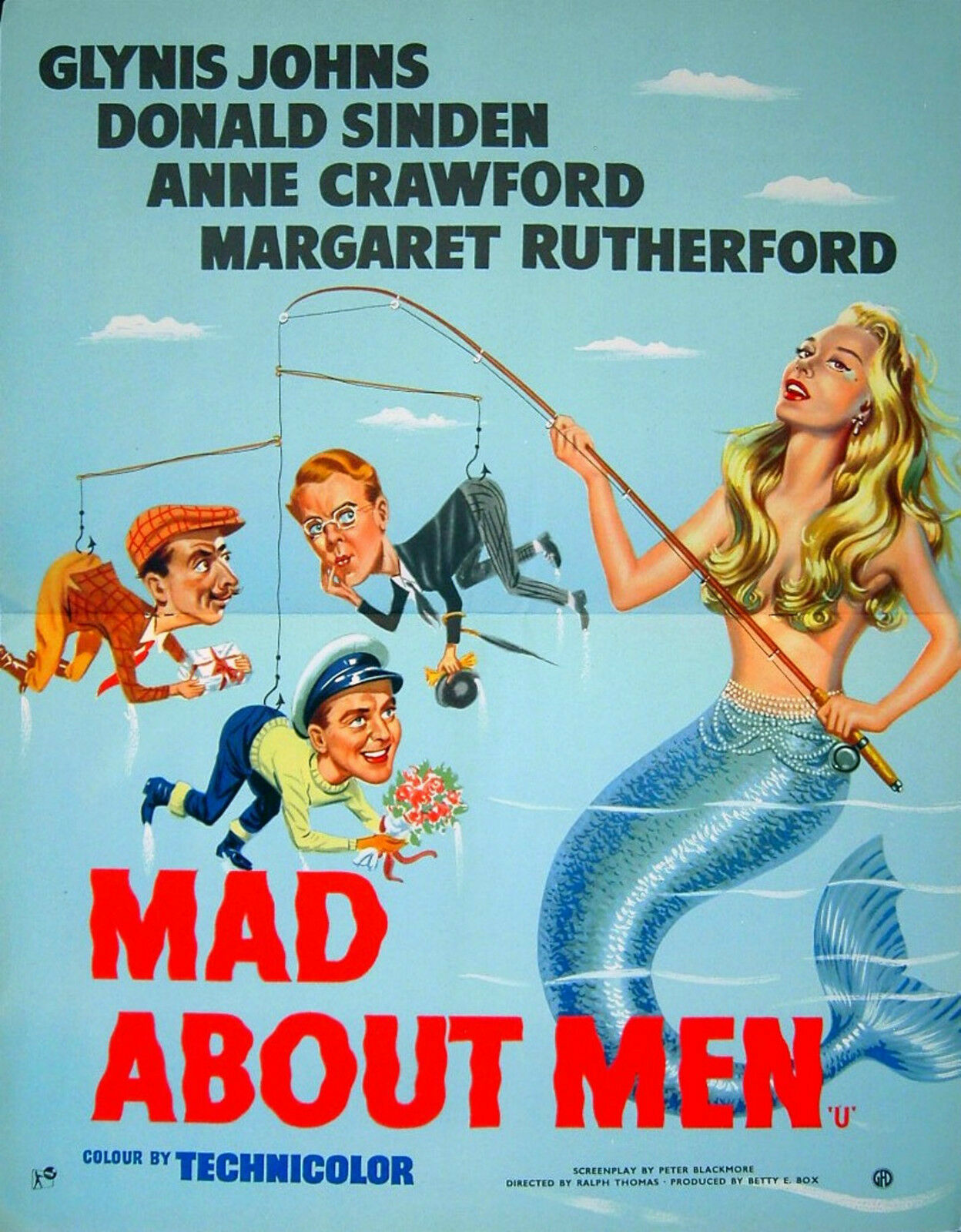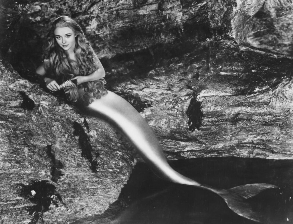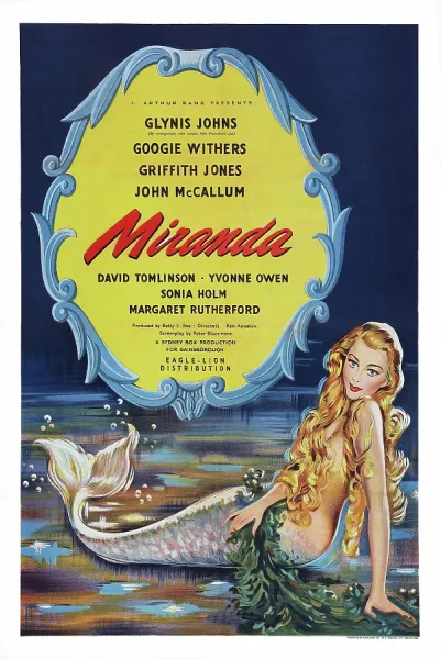 Johns returned to the London stage at age 19 to take the title role in Peter Pan. More film roles came her way, including a starring turn as a flirtatious mermaid in the popular fantasy-comedy Miranda (1948) with Googie Withers. “I was quite an athlete,” she recalled. “My muscles were strong from dancing, so the tail was just fine. I swam like a porpoise.” She reprised the part for the comedy sequel Mad About Men (1954), with the boy-crazy mermaid once again causing mischief. Yet there were also serious roles, such as in the wartime film Frieda(1947) and The Great Manhunt (1950), a thriller starring Douglas Fairbanks Jr and Jack Hawkins.