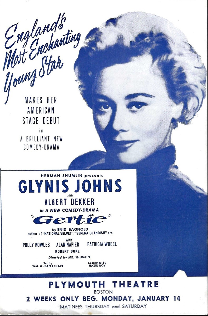 Her own television sitcom, Glynis (CBS, 1963), was a short-lived effort that cast her as a novice mystery writer and amateur sleuth who solves murders, but she then had fun with tongue-in-cheek villainy as Lady Penelope Peasoup in several 1967 episodes of the camp TV adaptation of Batman